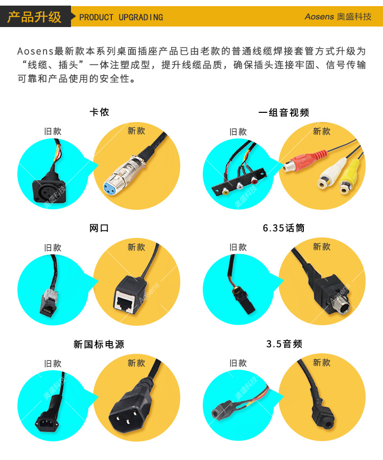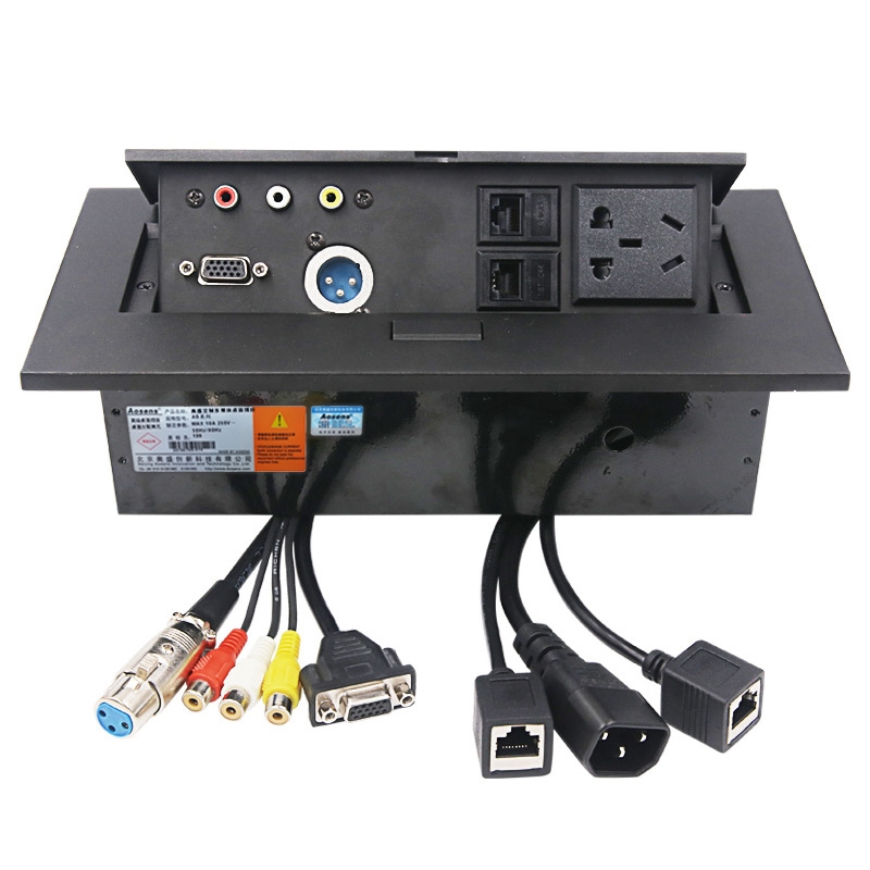 Aosens奥盛 弹起桌插带线信息盒会议桌信息插座五孔电源 VGA 网络 音视频 AS-ZH-600A