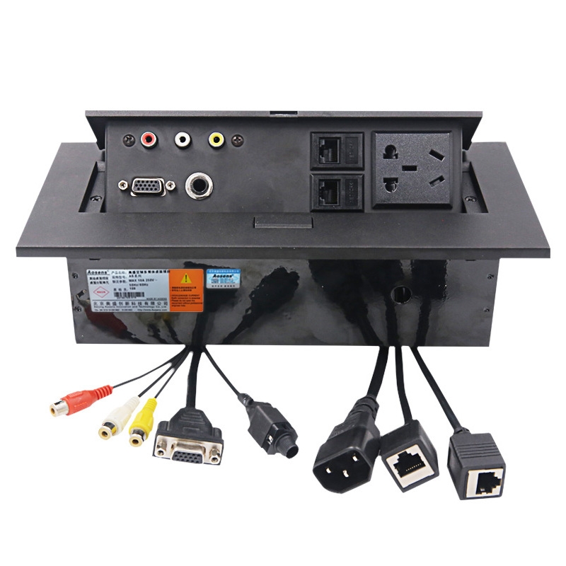 Aosens奥盛 弹起桌插带线信息盒会议桌信息插座五孔电源 VGA 网络 6.35话筒 音视频 AS-ZH-600C