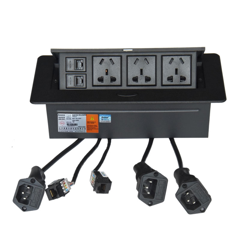 Aosens奥盛 弹起桌插带线信息盒会议桌信息插座五孔电源 网络 AS-ZH-600G
