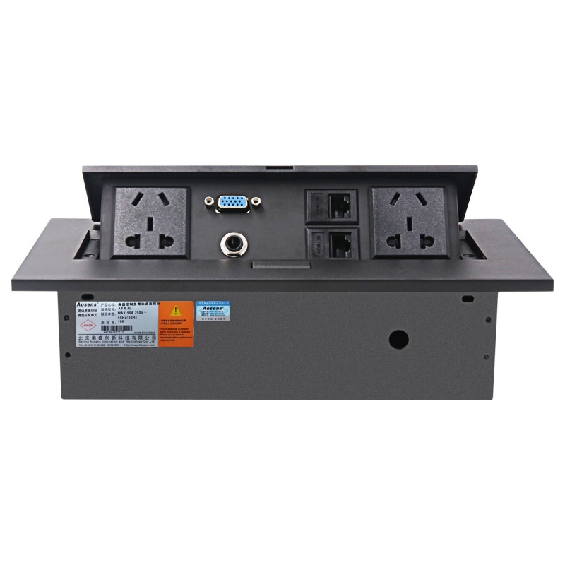Aosens奥盛 锌合金加长矮底盒多媒体桌面插座 信息插 五孔电源 6.35话筒 VGA 网络 AS-ZH-200B