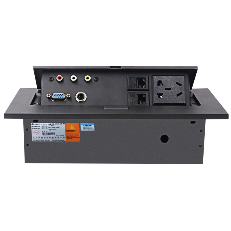 Aosens奥盛 锌合金加长矮底盒多媒体桌面插座 信息插 五孔电源 6.35话筒 VGA 网络 音视频 AS-ZH-200C