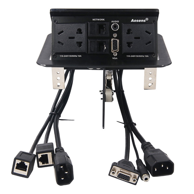 Aosens奥盛 弹起式桌面插座气压气动气撑多媒体会议免焊五孔电源 网络 VGA 3.5音频AS-ZH-307UA