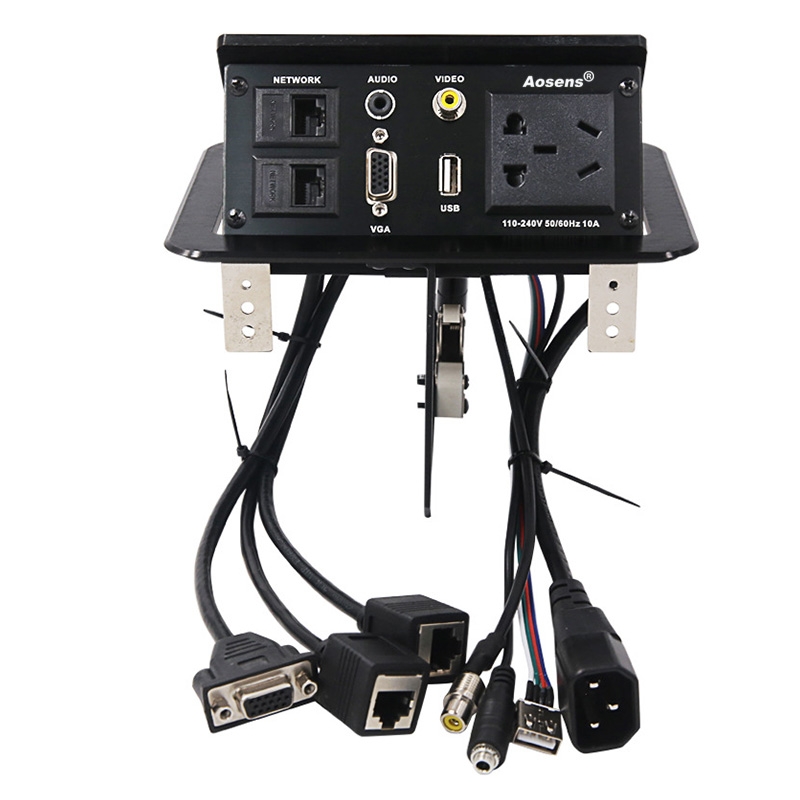 Aosens奥盛 弹起式桌面插座气压气动气撑多媒体会议免焊接 五孔电源 网络 3.5音频 视频 VGA USB AS-ZH-307UE