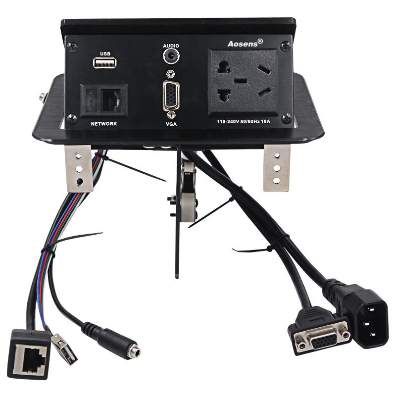 Aosens奥盛 弹起式桌面插座气压气动气撑多媒体会议免焊接 五孔电源 网络 视频 VGA USB AS-ZH-307UF