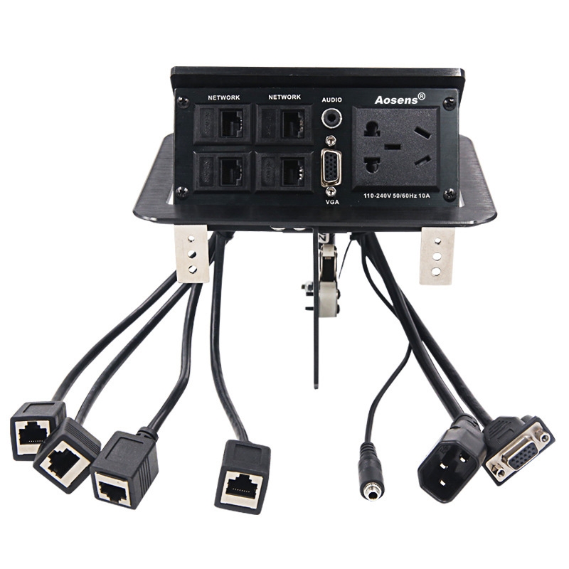 Aosens奥盛 弹起式桌面插座气压气动气撑多媒体会议免焊接 五孔电源 网络 3.5音频 VGA AS-ZH-307UM