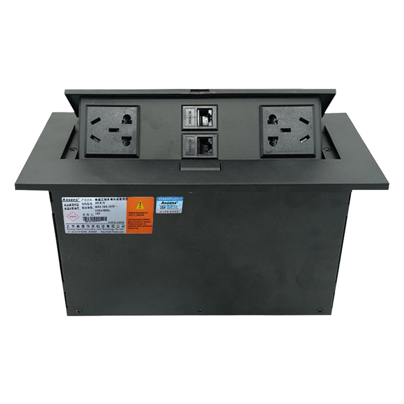 Aosens奥盛 多媒体桌面插座免焊接会议桌插 双网络 新国标五孔电源 AS-ZH-500H