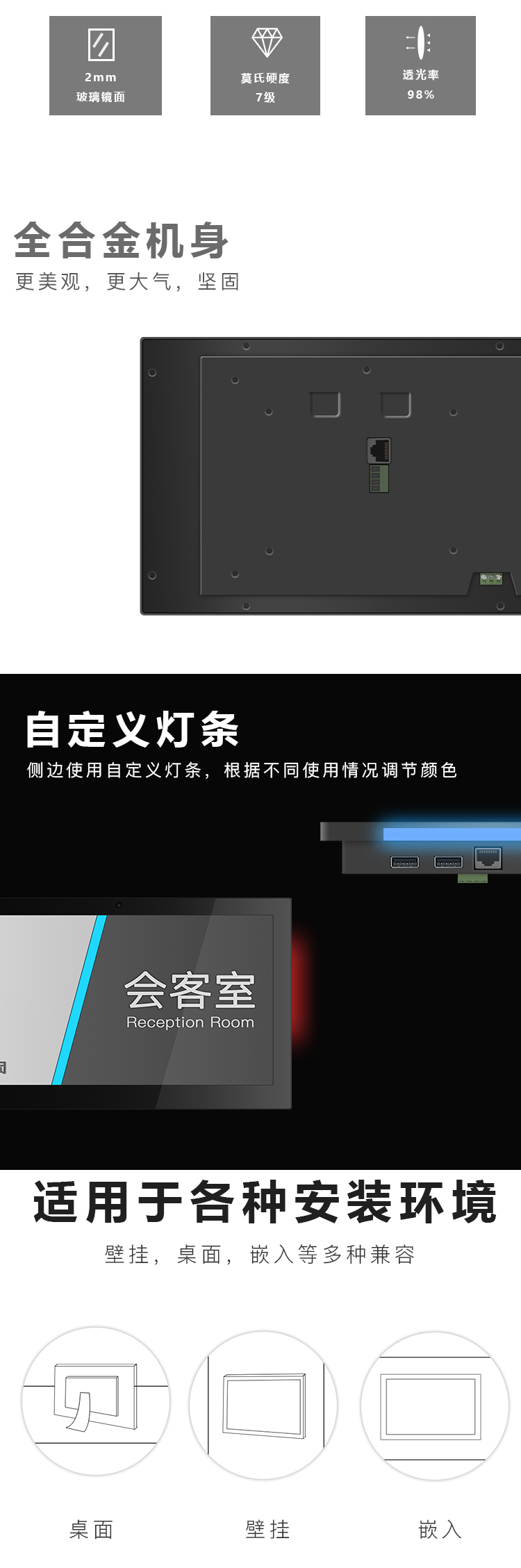 Aosens奥盛 8寸电子门牌 会议门牌信息显示屏 支持定制