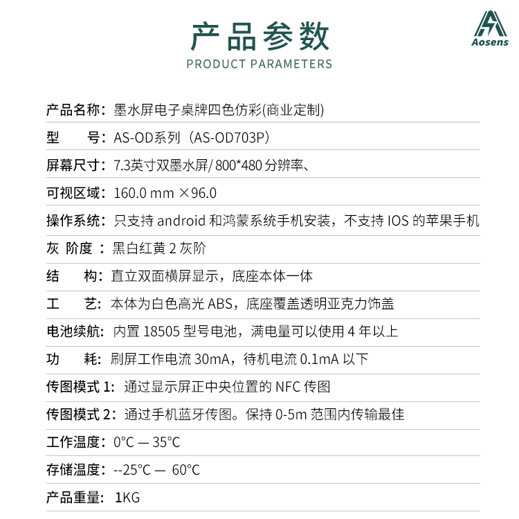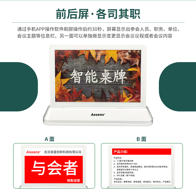 Aosens奥盛双面电子墨水屏会议桌牌四色仿彩屏电子桌牌商用定制AS-OD703P